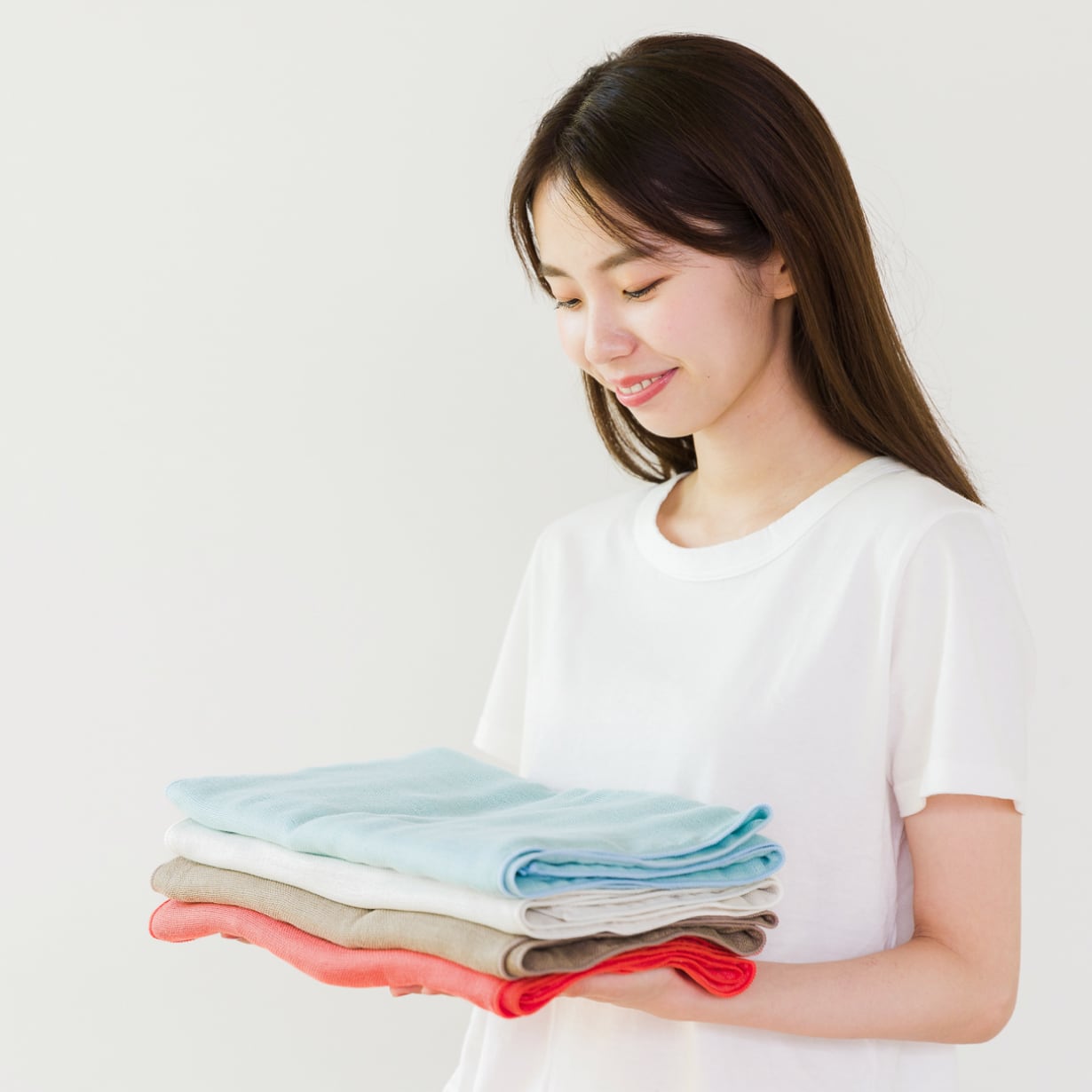 約40分で仕上げる一般的な「洋さらし」と違い、「和さらし」加工は4日間天然水に漬け込み、 繊維にストレスを与えないようじっくり仕上げるので、繊維が持つ丸みを壊すことなくふっくら柔らかく仕上がります。